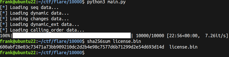 target[x]with round counter (resources can depend on each other). - Compare the final target array with expected array. If equal, use SHA256 of license.bin as AES key to decrypt the flag.